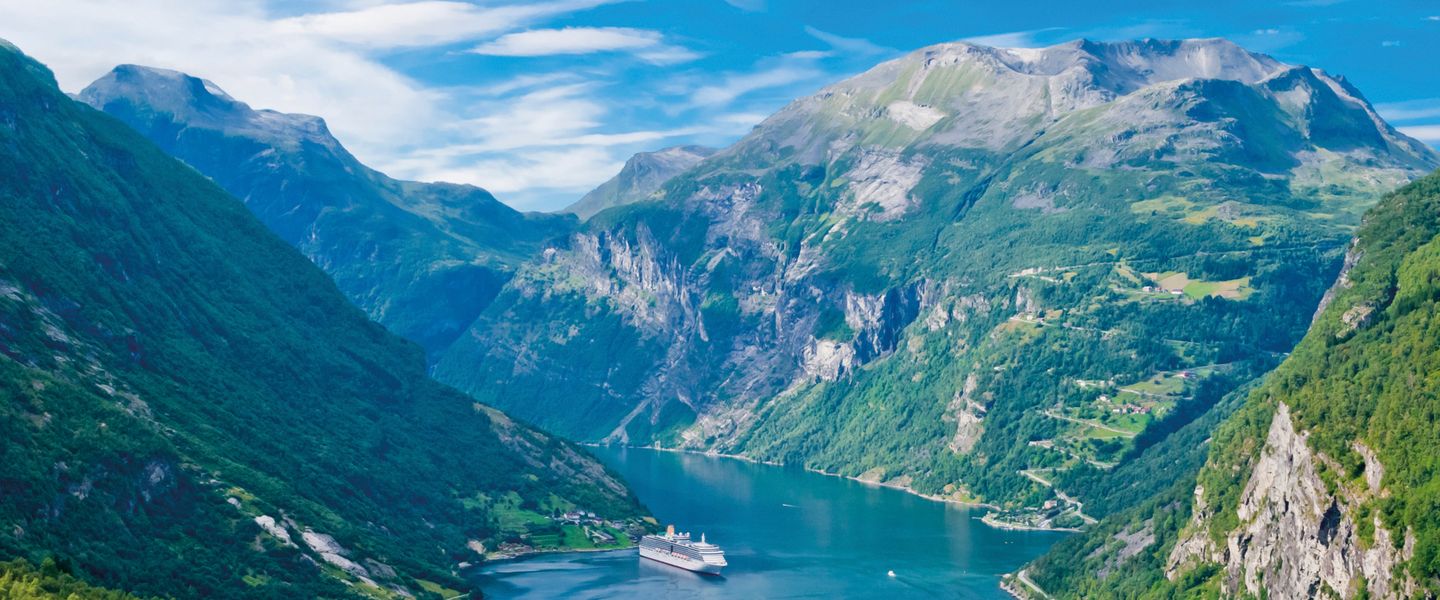 Durch die Wälder und Landschaften des Dovrefjells geht es Richtung Süden, vorbei an Dombas und Romsdal bis zum Norddalsfjord. Auf der Adlerstraße genießen Sie das fantastische Panorama auf den Geirangerfjord und seine berühmten Wasserfälle. In Geiranger können Sie nach dem Abendessen einen unvergesslichen Spaziergang am Fjord unternehmen.
